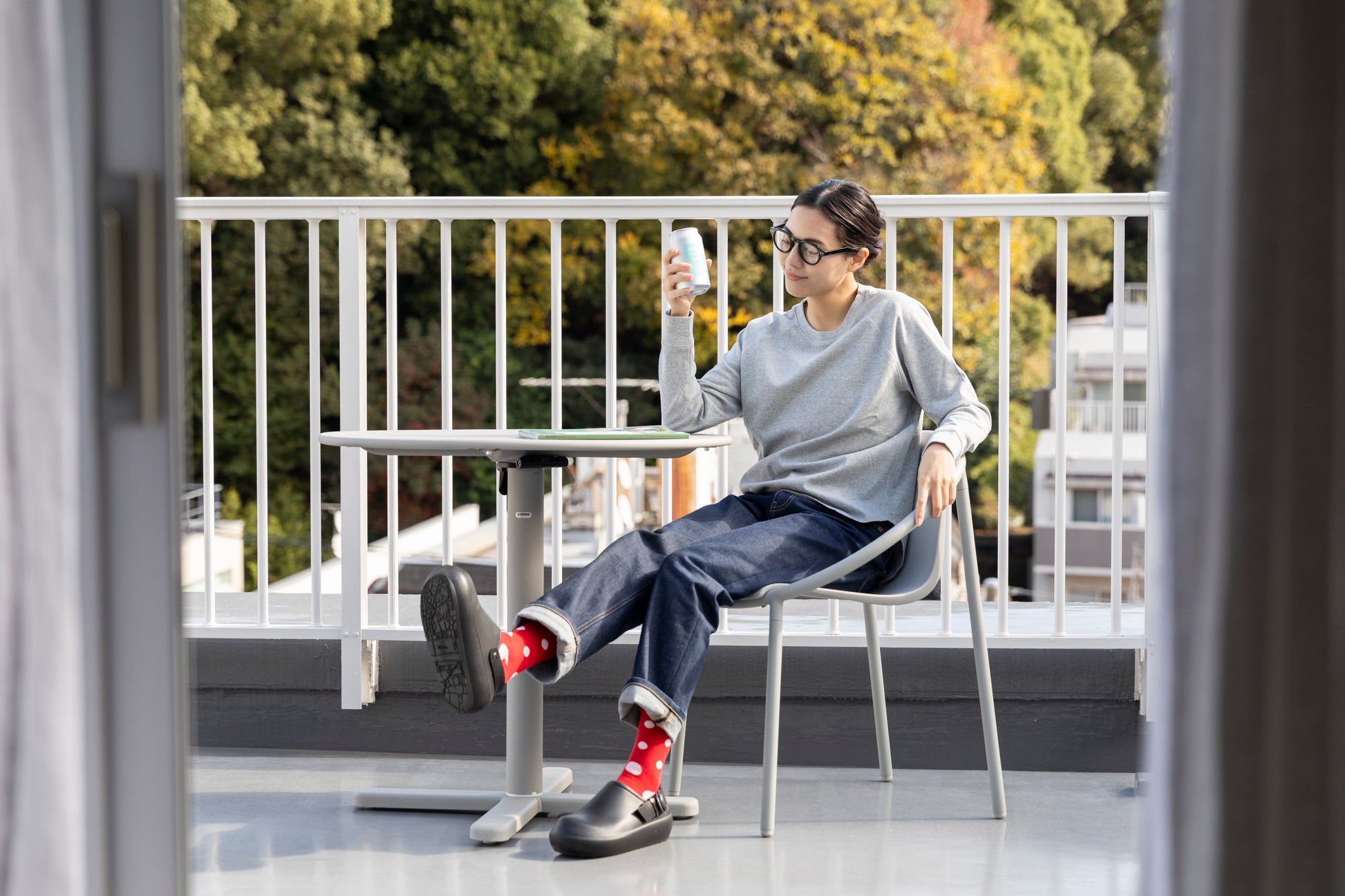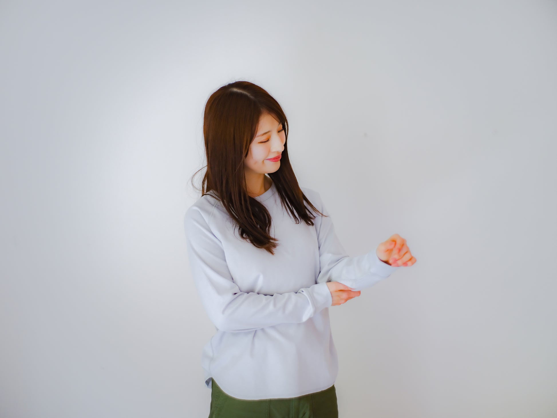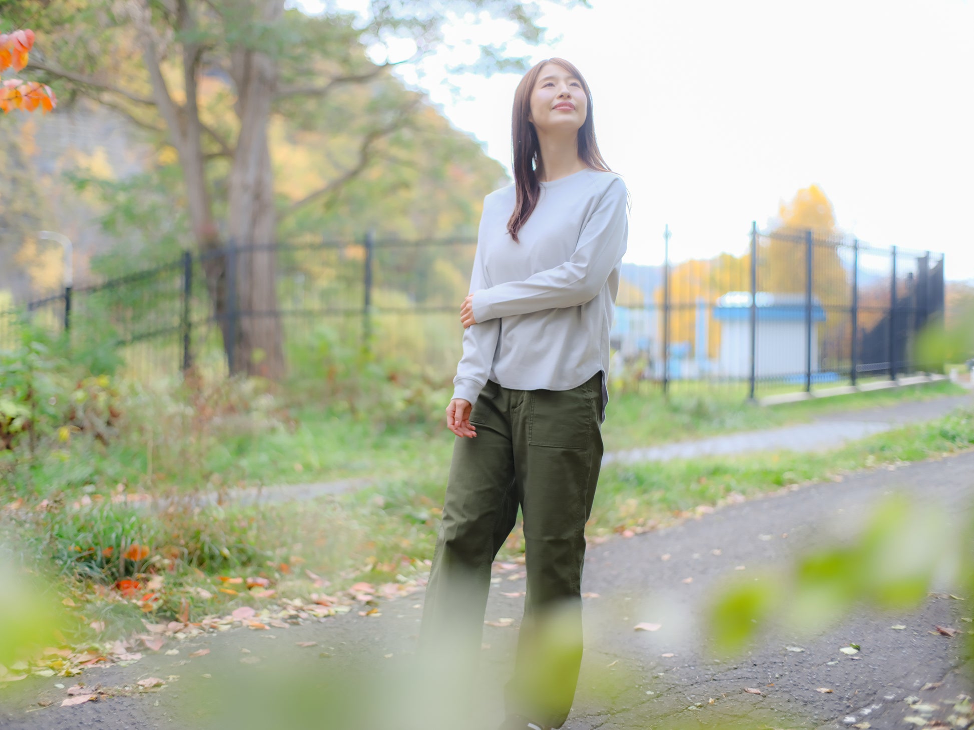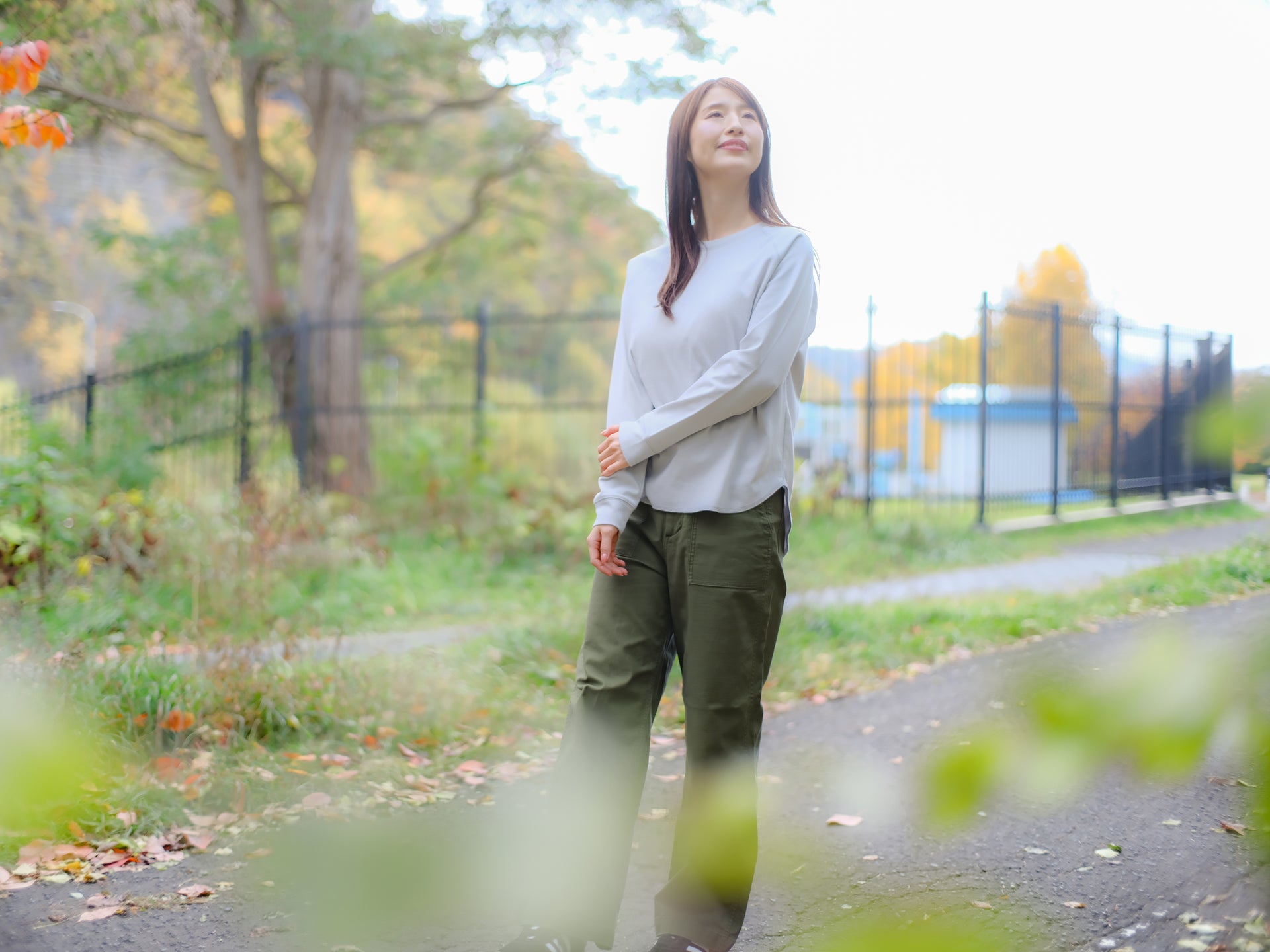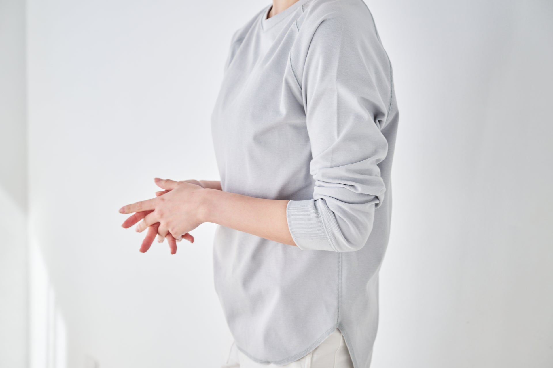 重ね着でも、一枚でも、すっきり整う。