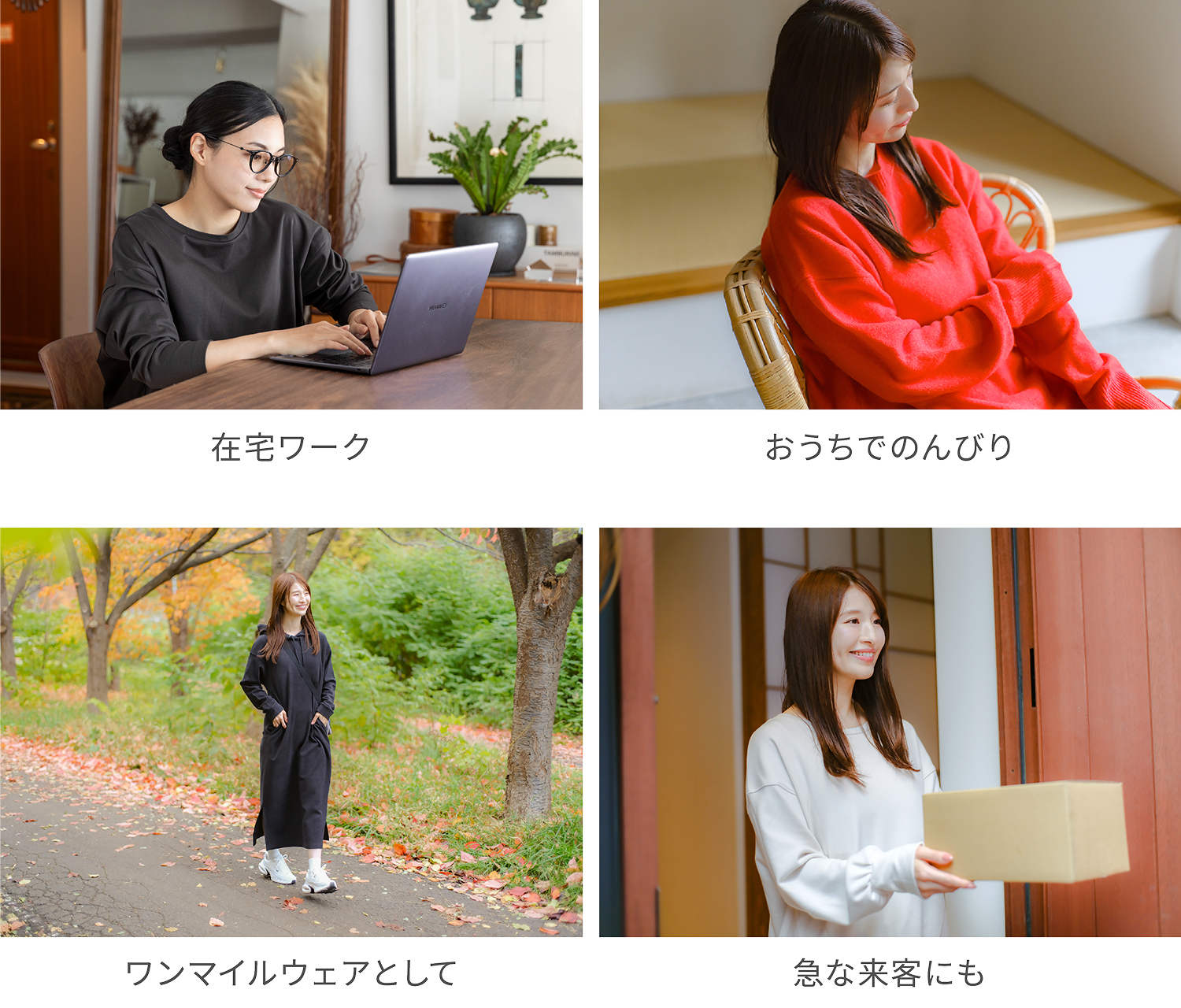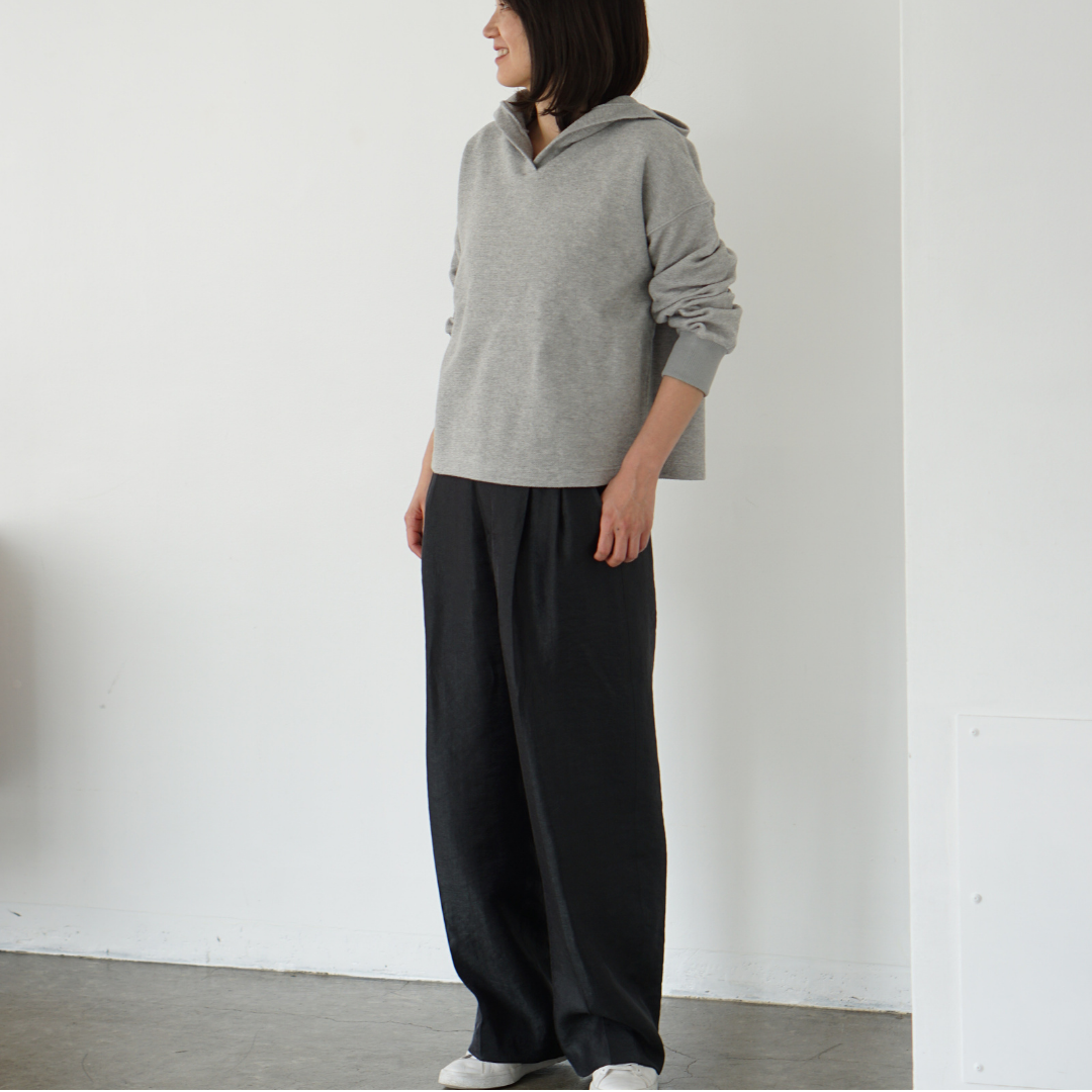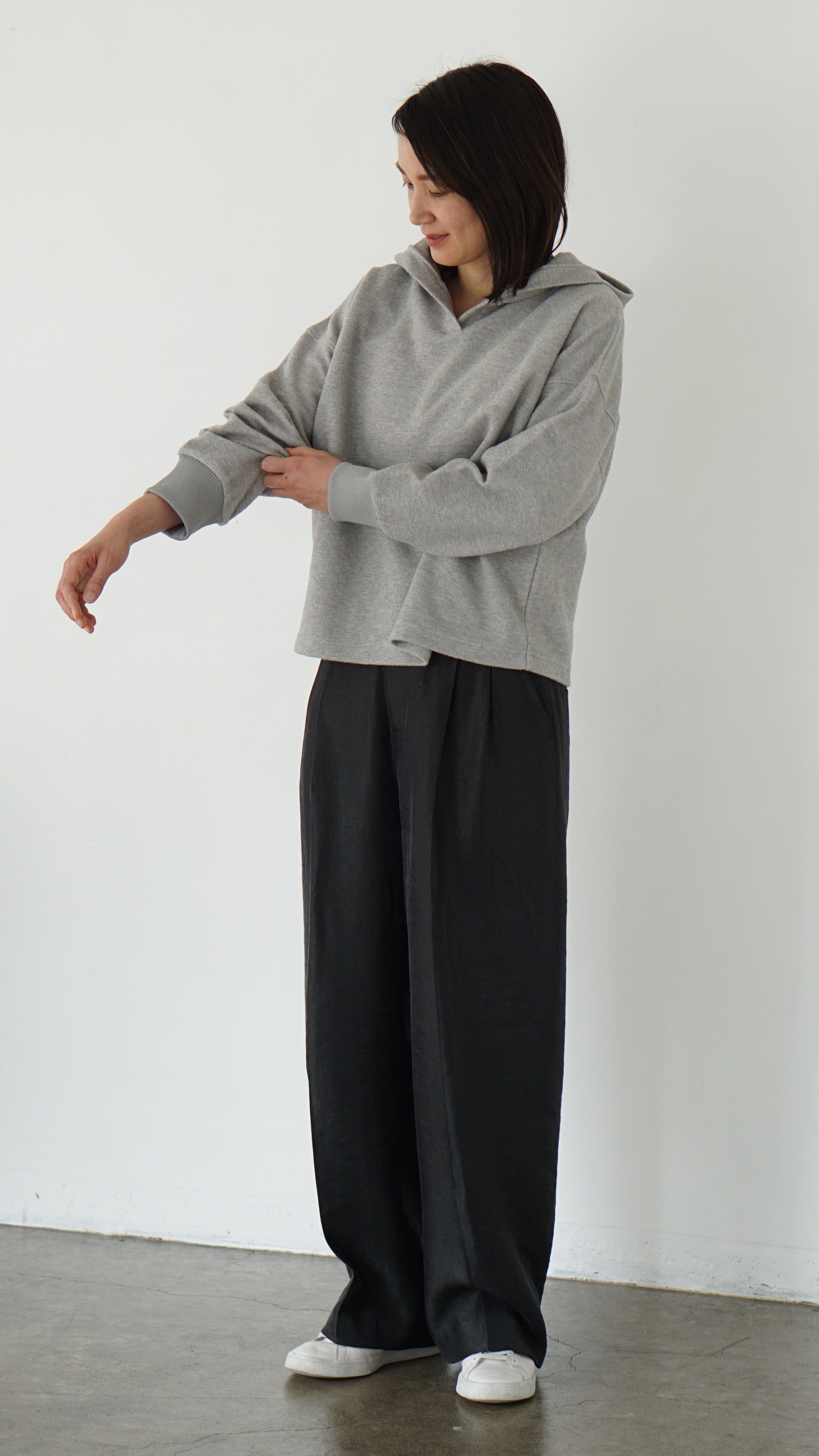POINT 01 短め丈 × ゆったりシルエットで自然にスタイルアップ